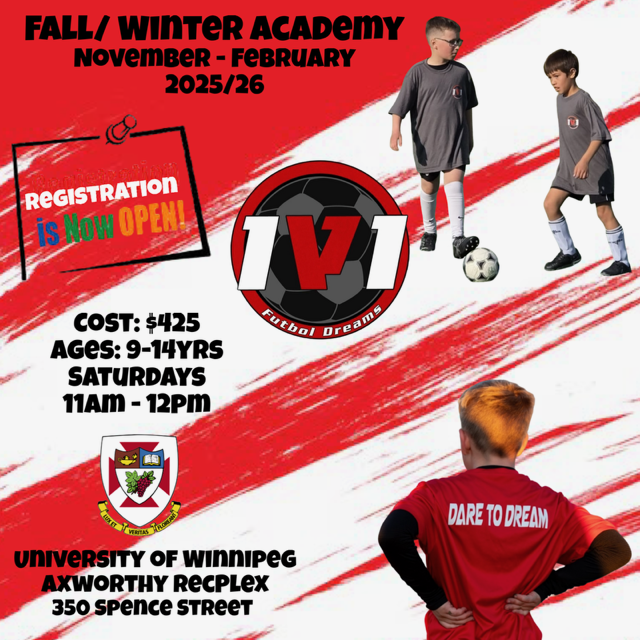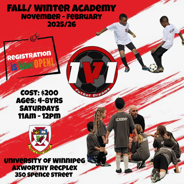 Fall/Winter registration is now open for all soccer fanatics ages 8 - 16 who are eager to sharpen their skills and elevate their game! Whether your’re a beginner looking to learn the fundamentals or a seasoned player aiming to refine your technique, our winter program offers top-quality coaching, fun drills and a supportive environment to help your child grow.